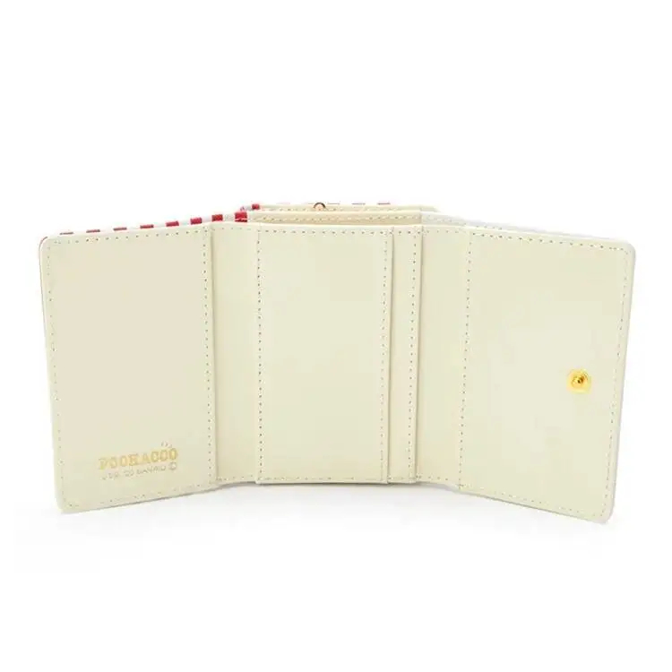 Ce portefeuille Pochacco affiche un trio de couleurs blanc, noir et rouge qui lui donne un look sportif et dynamique, fidèle à l’esprit du personnage. Le simili cuir (PU) est souple et résistant, avec un grain fin qui procure une sensation agréable en main. Son format de L.11 x P.3,5 x H.8 cm le rend facile à transporter, que ce soit dans un sac à dos, un tote bag ou une sacoche. À l’intérieur, tout est prévu : 4 porte-cartes, 1 compartiment à monnaie, 2 poches soufflet pour les billets, 1 poche bouton-pression et 1 poche plate extérieure.
